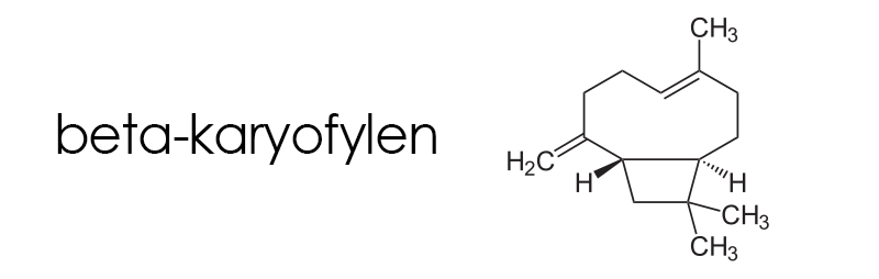 Seskviterpen beta-karyofylen se váže pouze na receptory typu CB2 a jejich aktivací působí protizánětlivě, analgeticky a hojivě, aniž by působil psychoaktivně, jako např. THC. Ve střevech ovlivňuje pohyb střev, tlumí nadměrnou aktivaci.